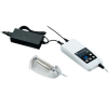 Able to operate with rechargeable batteries anywhere. When battery power level is low, just plug in AC adapter into outlet; bring the unit to patient visits without worry. It is very easy to carry since the control unit is palm-size (W 72 x D 180 x H 36 mm) and weighs only 370 g.